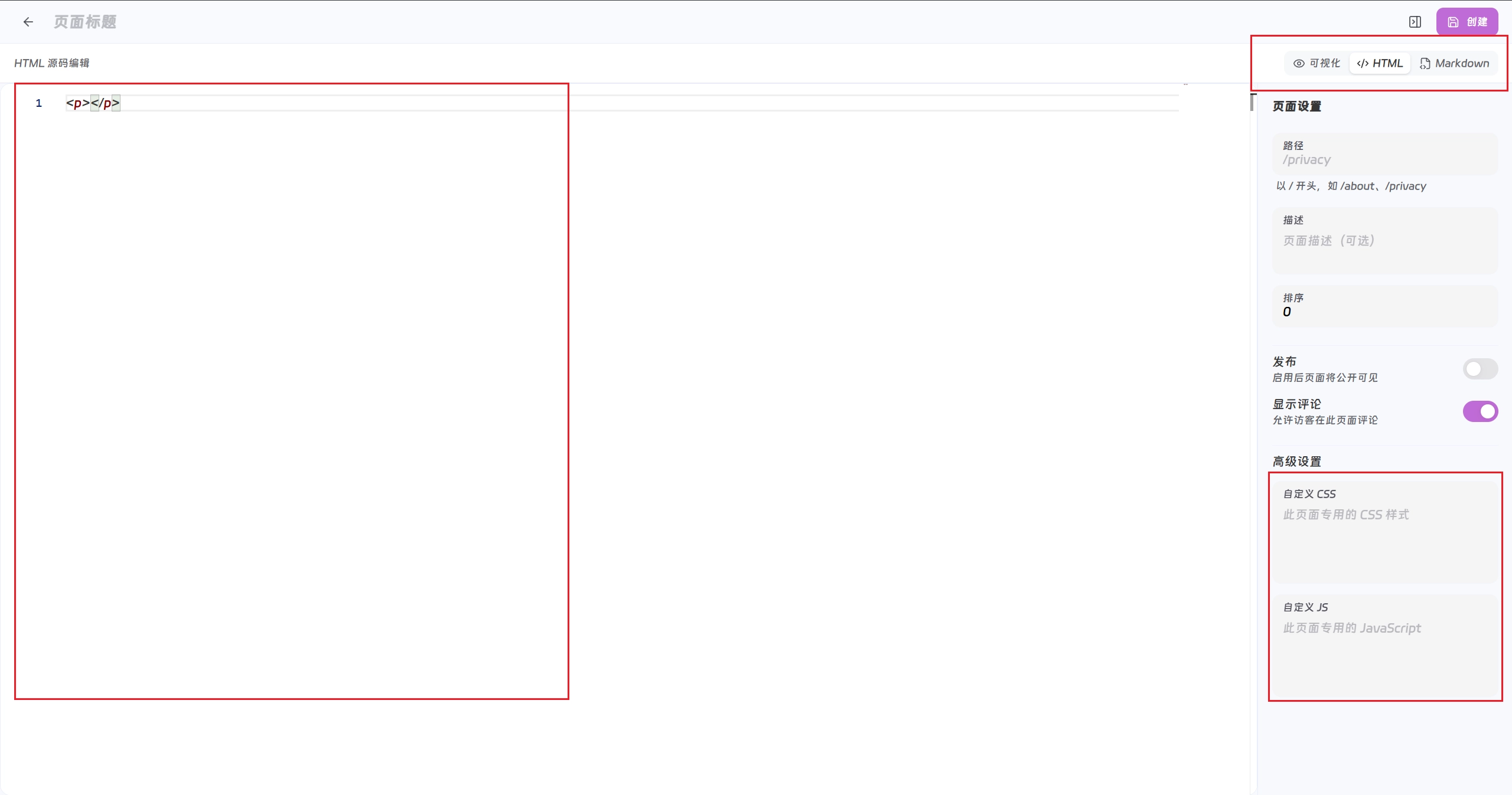 请前往后台管理-内容管理-页面管理,然后点击新建页面